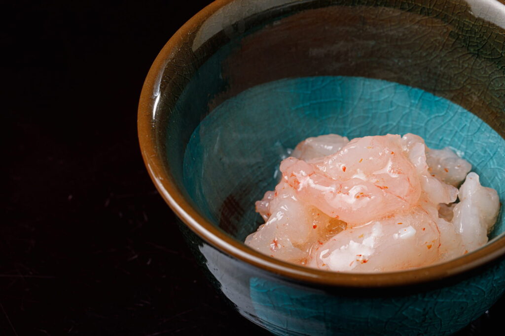 一般的な「いかの塩辛」のような強い塩気ではなく、甘エビ本来の甘みを引き立てる程度の控えめな味付けが特徴。塩味を加えることで、素材の甘さがより際立ちます。