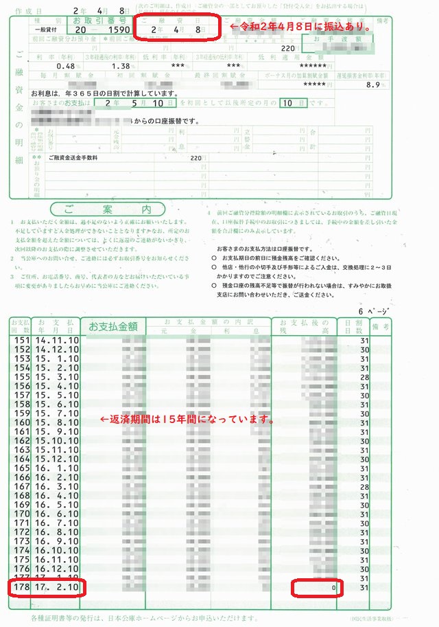 →返済期間は最長15年間なのですが、返済期間5年のプランに比べて金利はわずか0.02%高くなっただけでした。1000万円借りて金利差は年間2000円だけという計算になりますから、先行きが不透明な現段階では可能な限り余裕のある返済期間にしておく方が良いと思います。※金利については借入金額によっても変更があるかもしれませんので各自ご確認ください。