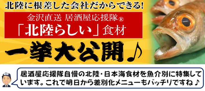 ホタルイカだけじゃない!金沢直送・居酒屋応援隊だからこそ取り揃えられる北陸・日本海らしい食材を一気にご紹介している特設ページはこちらから↓。