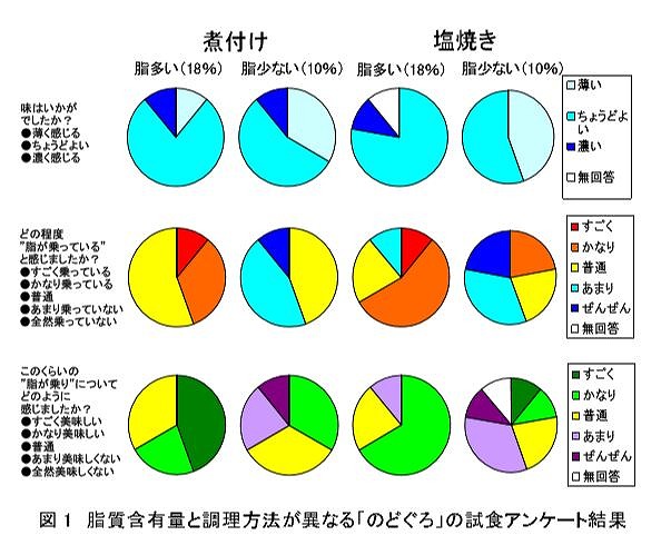 上で少し書きましたが、飲食店経営の場合はお客様にも飲食店側にも予算があり、誰もが高級料亭で提供されるような超高級なお料理を常に必要としている訳ではないという視点も大切です。それなりの価格で「これはお値打ち!」と納得できるような料理を期待して来店される方が大半でしょうから、飲食店経営では手頃な単価の食材を仕入れることが大切になります。ただその中には当然少し脂質の落ちるものも入ってくるわけで、それも含めて素材の味をいかにうまく調理して来店されたお客様に提供してお値打ち感を出していくか、というところが料理人の皆様の腕の見せ所ということにもなりますよね。では、実際にはどんな調理方法が良いのか。参考になる検証を先ほどもご紹介した島根県水産試験場のサイトで見つけたのでご紹介します。