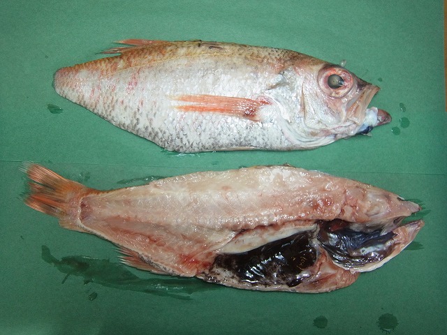 ちなみに先程の学名(Doederleinia berycoides)でググってみたら、どうやら英名でも”Blackthroat seaperch”(直訳すると「喉(ノド)の黒い鯛(もしくはスズキ)」)と言うらしく、この辺の「見た目の特徴で名前をつける」というのは万国共通なんだなぁ~と妙に安心しました。