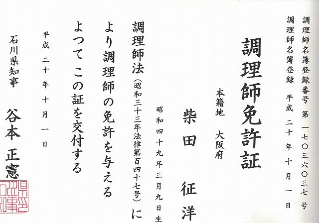 🎓 資格:調理師免許(石川県)/貿易実務検定B級/TOEIC845点