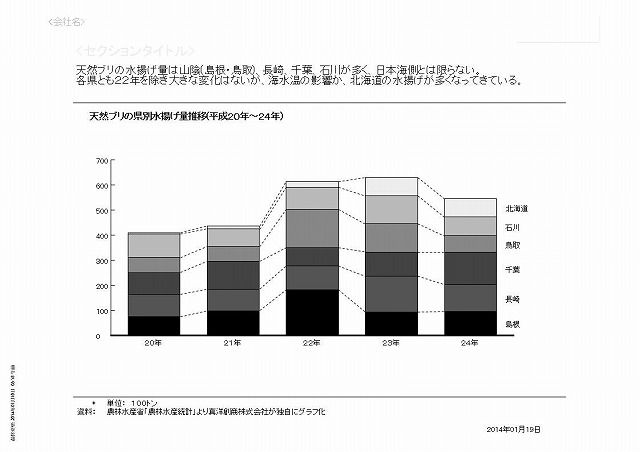 平成22年は山陰地方で天然ブリが大漁だった様子ですが、それ以外の年は各県とも安定した水揚げといったところでしょうか。