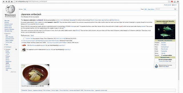 【意訳】(ぶりは)特に日本でハマチ、ブリと呼ばれて珍重されている。日本では加熱・生の両方で食され、厳冬期になると脂が乗ってくるため季節の魚として好まれる。冬の富山や北陸地方のブリは特に絶品である。