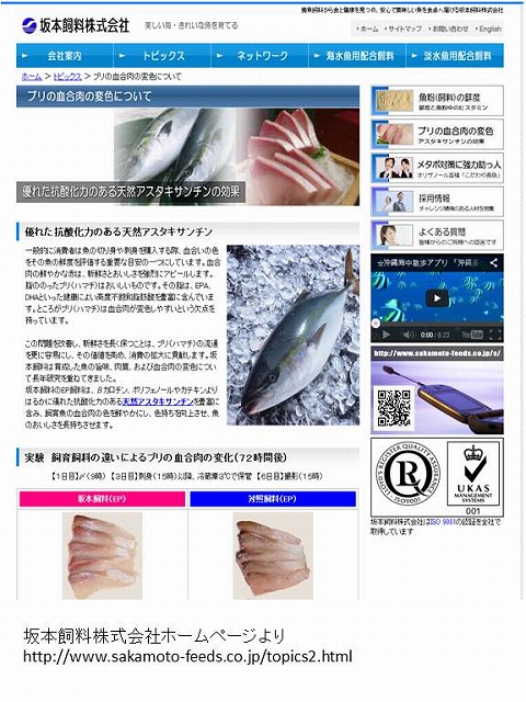 ちなみに養殖と天然では栄養価にほとんど違いはないようですが、養殖のブリがいつも脂があって血合いの色も変わりにくいのはエサ(飼料)に魚脂や抗酸化物質を混ぜているからだと教わったことがあります。一時期はエサに混ぜる抗生物質の人体に与える影響などが問題になったりもしましたが、最近は天然素材を活用した飼料も開発されてきているようですね。